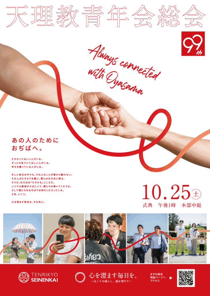 天理教の教えを知れば、そのような人間の生きる意味に則った生き方について学ぶことができます。具体的には、日々の心遣いや言葉使いや行動についてです。悩みや不安がある方、人生を楽しく生きられていないという方は、この生き方を試してみることをお勧めしています。そうすれば、きっと悩みや不安は軽くなり、身に起こってくる出来事も良いことが起こり、見える世界も変わってくるはずです。